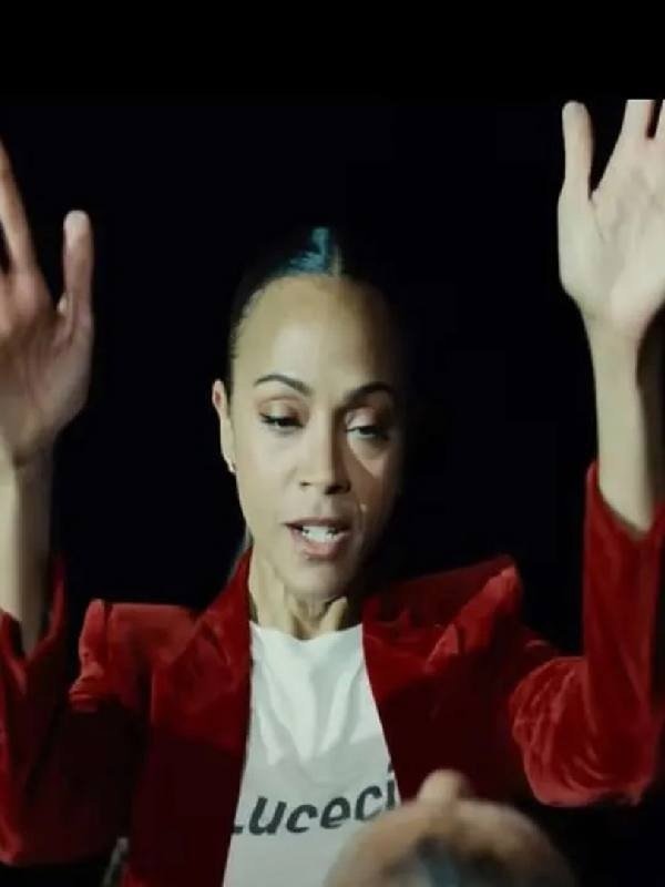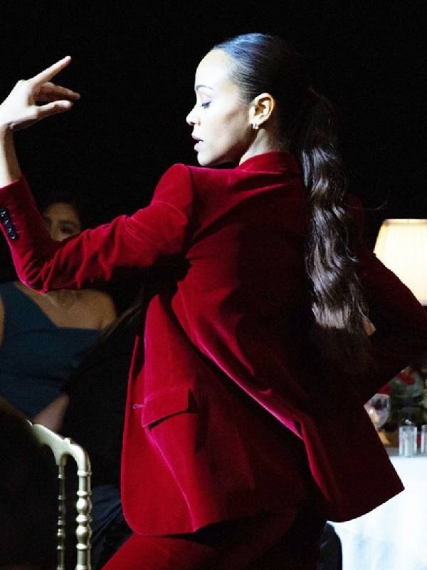 Zoe Saldana Movie Emilia Perez 2024 Rita Moro Red Velvet Blazer
