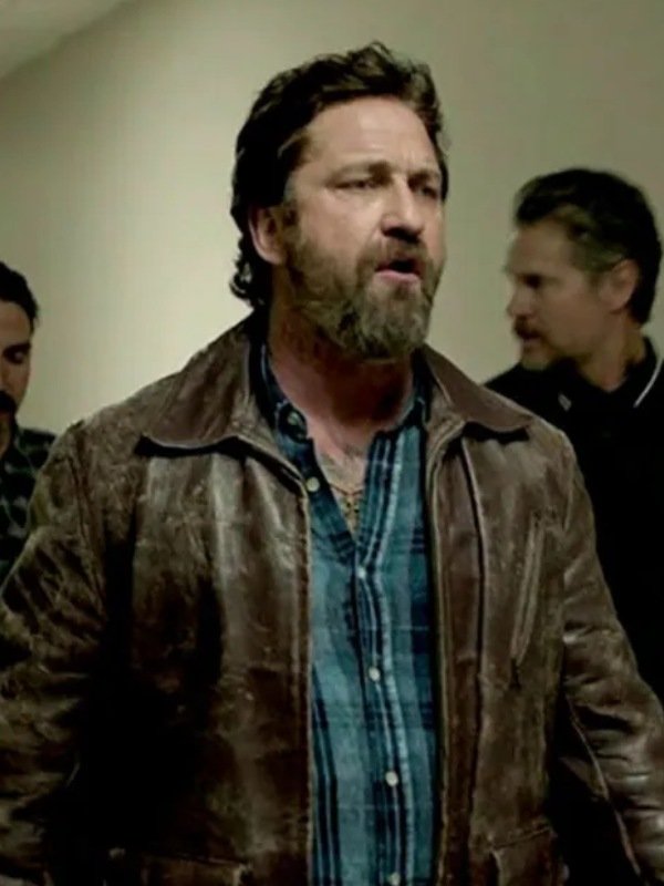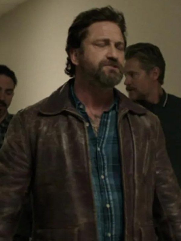 ‘Big Nick’ Den of Thieves Gerard Butler Distressed Brown Leather Jacket